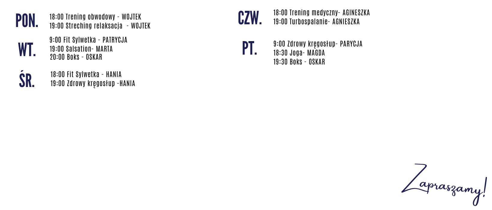 GRAFIK ZAJĘĆ GRUPOWYCH